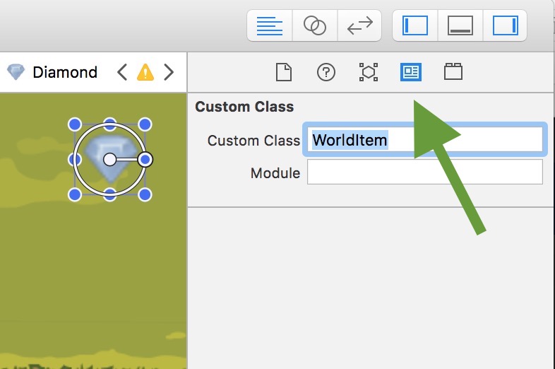Next, you must set a Custom Class of WorldItem. Switch to the Custom Class tab (where the arrow is pointing below), and write WorldItem. You can leave Module blank.