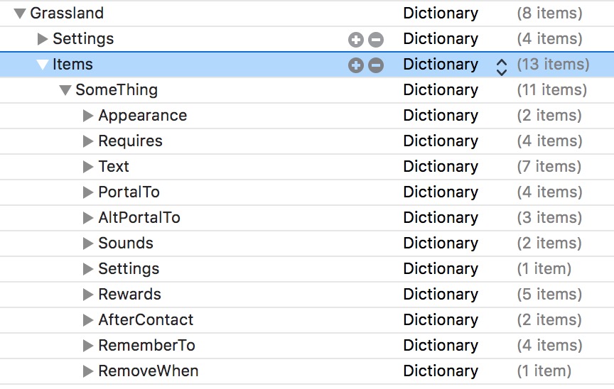Objects described in the Items dictionary are basically anything that doesn’t harm the player, but has some interaction with the player (aside from just being a physical obstacle). If you just want to add a simple tree to the scene, that does nothing on contact with the player, you don’t need to add information in the property list about that tree.