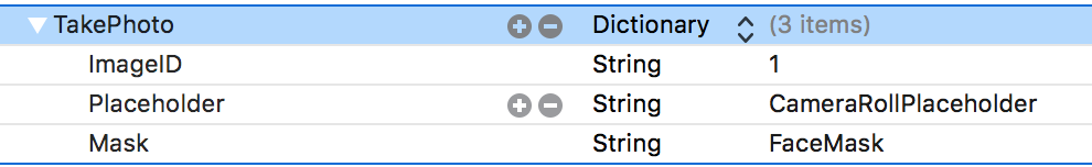 - TakePhotoWithMask – the value should be an image in an asset catalog to use as a mask. The app will attempt to access the camera to take a new photo (the user must grant access for the app on the first attempt).