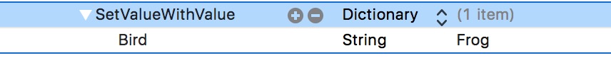 - SetValues – the contents of this dictionary will be key and value pairs for example, BalloonCount could equal 10. This gives you a way to reset values or set them. You might set Clock to 30, in preparation for a countdown clock.