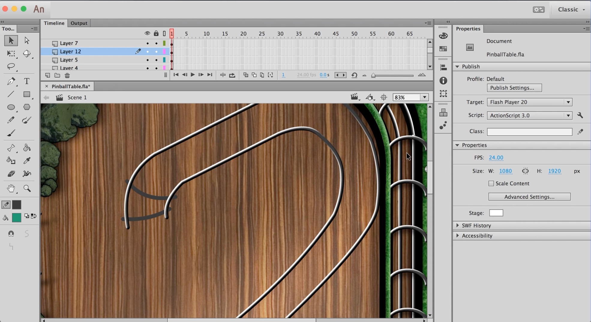 In this new video tutorial series, we’re going teach you how to draw pinball game art or ANY kind of top down viewed game art. So fear not, if you have no interest in creating a pinball game, you’ll still enjoy this series as we cover dozens of illustration techniques for Adobe Animate or Adobe Flash. Our pinball table will have a mostly-top down viewed perspective, with some 2.5D leaning angles toward the top. So by the end of the course you should feel comfortable drawing objects directly overhead or with a slight angle.
