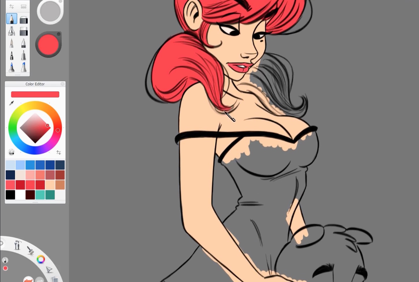CartoonSmart students can now choose between buying Lifetime Access to our courses or purchasing one of our affordable Subscription plans. Lifetime Buyers can choose between downloading zip files of each movie or streaming them on any of their devices. Subscribers can stream courses, also on any device, and whether or not you subscribe or buy, every student has access to course materials (which could be PDF files, images, video, code projects, etc depending on the lesson). Your instructor uses the desktop version of Sketchbook Pro by Autodesk, but you can choose any illustration software you own. If you choose to use a sketching program for the iPad, two recommended apps are Sketchbook Pro for iPad and Art Studio for the iPad. Paris Christou, professional instructor and YouTuber-extraordinaire, teaches this lengthy course on how to draw Cherry in elaborate detail. Paris is a full time animator, pin-up artist, children’s story book illustrator, and has his own comic series for a nationally distributed newspaper in the UK. Digital Painting Tutorials! Over 5 hours of tutorials, broken into two levels of training… In this 2 hour session, Paris supplies you with his beautiful hand-drawn sketch to follow along throughout this video series. Watch over his shoulder as Paris demonstrates and explains his Five Easy Steps to inking and coloring cartoon characters so that you can feel confident to create eye-catching images. Watch over the shoulder as Paris Christou demonstrates and explains in pure detail all his tricks and techniques on how to ink and render his cartoon character “Cherry” into this gorgeous summer pinup. Paris focuses on painting the form of the character to give that semi-realistic touch whilst still keeping the 2D cartoon feel to the artwork. Inside this course you will learn: Watch a short preview of the course…