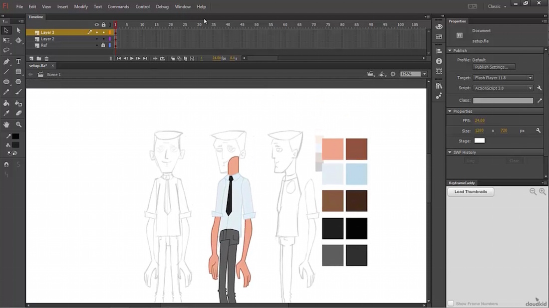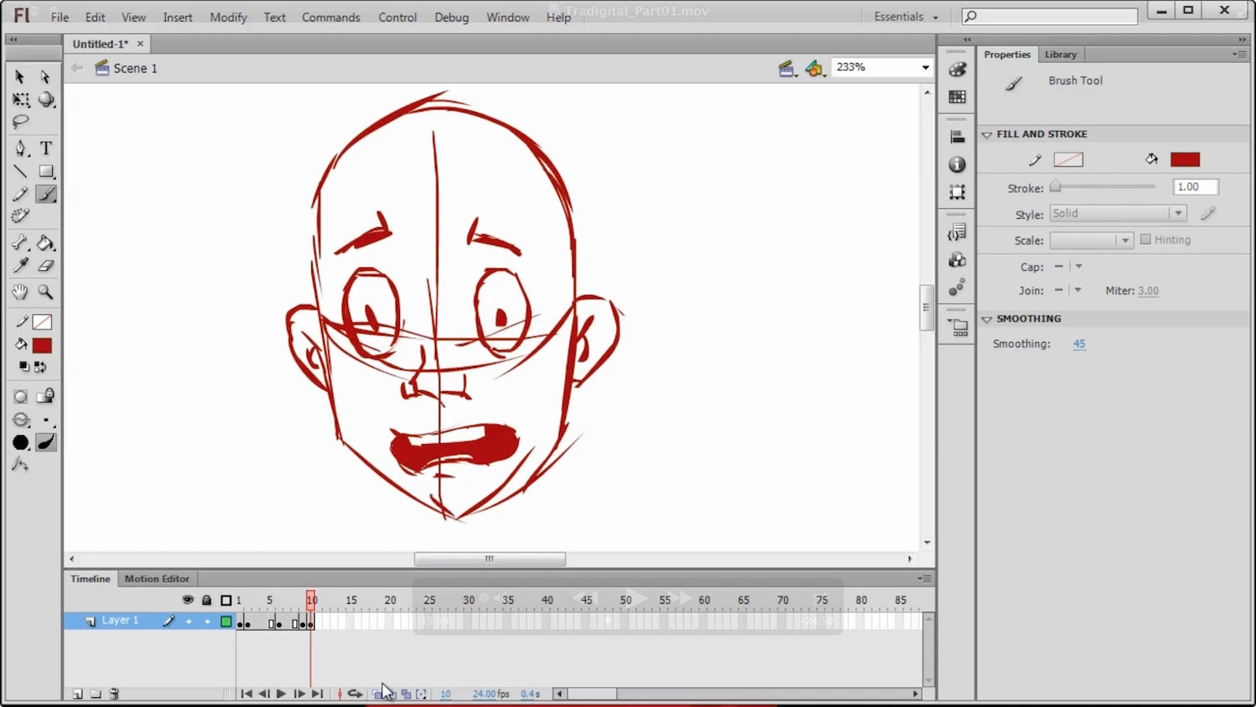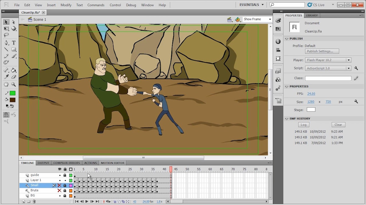 Tradigital Animation: Head Movements – 4 Hours Join your instructor, Conan Sinclair, in this first course on tradigital animation. It focuses entirely on head animations: movements, turns, flexibility, dialogue, etc. This series is divided into five parts, outlined below: Part 1 – The Basics. This first lesson covers basic animation techniques applicable to any program you choose to animate with, but Conan does spend some time early on teaching a few of the tools within Flash that he will be using throughout this series of lessons. Part 2 – Head Turn Animations. Learn how to do a head turn animation, starting with two key poses, then work with timing, ease-in and out’s, and in-between frames. Part 3 – Flexibility. Learn how to get more flexibility in your animation when going from one keypose to another. Part 4 – Lip Syncing. This part covers dialogue animation using mouth shapes (or phonemes) and then the instructor brings in an audio file to sync an animation to. Part 5 – Cleaning Up. This last part teaches how to clean up your animation, paint in a more polished, professional look to your frames, then include Layer effects to add a variety of styles to your final piece. Watch a finished animation from this project above. Tradigital Animation: Body Mechanics – 6 Hours In this second tutorial, Conan will teach traditional techniques for body animation. Again, he’ll be using Flash, but you can use the animation program of your choice. The six hour course is divided into the following parts… Part 1 – Body Mechanics Basics. This lesson teaches the basics of how to make your body animations look real. In the cartoon world anything is possible, but there’s still some “rules” to play by. You can’t have joints bending every which way, and that’s one of the things this part looks into. The second half of this lesson teaches a simple animation exercise by making a body move from one side to another. Part 2 – Jumping. This part teaches how to animate a realistic jump, which is a great movement exercise to get an appreciation for weight. Part 3 – Sitting and Standing. Think about how often a character on TV gets up or sits down in a scene. In your own animations, you’ll find this a useful exercise to add some movement to a scene where your characters might otherwise only be talking. Part 4 – Walk Cycles. The next few lessons focus on every animators favorite (or possibly most dreaded) sequence: the walk/run cycle. Conan teaches his method of breaking these down into four manageable key poses, which he then adds in-betweens to. Part 5 – Run Cycles. Runs are similar to walks in that you’ll learn to create four key poses of the cycle, but this time with a bounding motion to it, and the faster the run, the more of a lean is added to the character. Part 6 – Advanced Movements. This final lesson converts our side view cycles into front view and three-quarter view cycles, which can be a real test for new animators. Conan also teaches a walk cycle with a “double bounce” movement. Watch all the animations created during this lesson above. Tradigital Animation: Fight Scenes! – 9 Hours In this tutorial, Conan goes beyond the fundamentals from his previous tutorials, and now focuses on a multi-scene fight animation, using Flash & After Effects (or your choice of non-linear editing software). Below is the outline of what you can expect to learn… Part 1 – Setting up the Scene. Conan explains how important it is to begin with model sheets, an environment and storyboard before beginning to actually animate. Those assets are included along with source files throughout the rest of the tutorial. This part mostly focuses on setting up the stage with some initial animation of each character during the pan-in. Part 2 – Building Suspense. No fight sequence would be complete without some initial “showboating” of each opponent’s skills. In this part Conan animates the Big Brute’s “bring it on” style fist clap and the Little Dude’s sequence of martial arts flare. Part 3 – Punching and Running. In this lesson, the two key sequences are the Little Dude running to attack and the Big Brute sending a direct punch toward the camera. This part has some great examples of “smear”, similar to motion blur, but done by actually drawing in a smear of motion to the frame. Part 4 – The Fight is on. Kick, block, deflect, punch, there’s a little of everything in this part. Part 5 – Clean Up and Compiling the Finished Scenes. This lesson covers coloring the rough frames, then exporting PNG sequences to be compiled into a non-linear video editing program for a little extra sizzle. Conan uses After Effects, but you can edit together the finished scenes in the program of your choice. He’ll also teach how to add some effects to make the entire piece look less like it was made in Flash. Watch the finished animation created in real time during this lesson. Tradigital Animation: 2D FX – 6 Hours Learn how to animate 2D special FX using Adobe Flash (or your choice of software). Watch in real-time, as your instructor shows you how to animate various explosives, water pouring, splashes, steam, smoke, candle flames, fire and much more. These FX are the foundation of countless other hand-drawn style animations you could create. And while Conan’s preference is to use Flash for animation, you could work with any program, such as Toon Boom Animate or Toon Boom Studio. Muzzles and Mini-Explosives – Session 1 and 2 of the course focus on the muzzle and mini-explosive FX. Candle Flames and Fire – The third session in the series teaches you how to animate a small flame and a larger fire. Steam and Smoke FX – The fourth session covers two similarly challenging effects, steam and smoke. Running Water and Splash FX – Water is the bane of most animators at some point or another. Check out how Conan tackles both a running water and splash effect in the fifth session. T