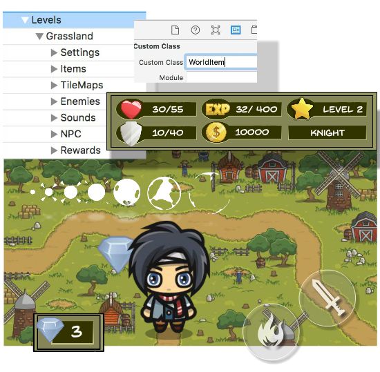 Collect unlimited items to pass levels (for example, find 5 keys to open a portal). Inventory items can be added to the GUI to remind players what they’ve collected.