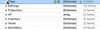 From top to bottom, lets run down the Dictionaries in the root (main section) of the GameData.plist. The term “Dictionary” basically just means a grouping of properties. So for each dictionary you see above, you can unfold it to reveal more properties, including other dictionaries.