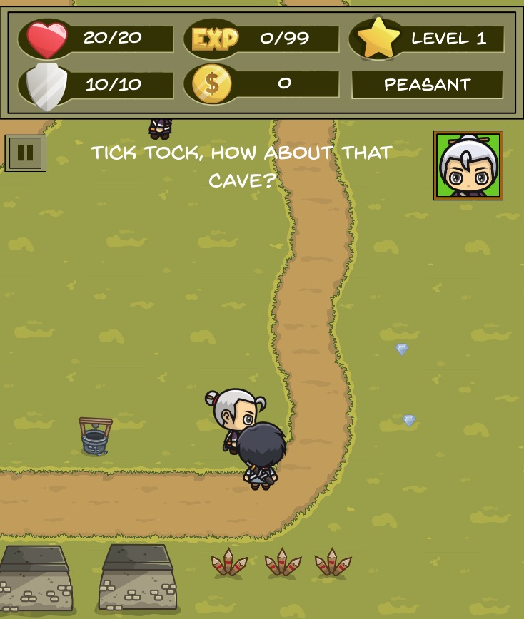 No RPG is complete without some NPC’s or Non-Player Characters roaming around your game to help the player figure out where to go, or what’s going on. NPC’s in the kit will walk randomly around (so they can have 4 directions of artwork), and can include random lines of text to initially speak to the player on contact, and then random secondary (reminder) text to speak when the character re-contacts the same NPC.