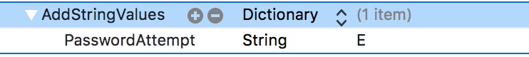 - AddStringValues – A new dictionary property as of Build 1.12, allowing you to add String characters to a saved value. For example below, Â the saved value is named PasswordAttempt and the character to append is E. If this event was triggered from a button, the reader could press it 4Â times and their password would be “EEEE”.