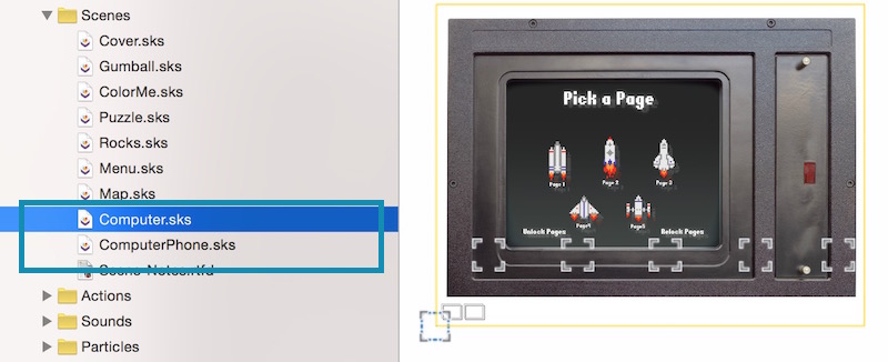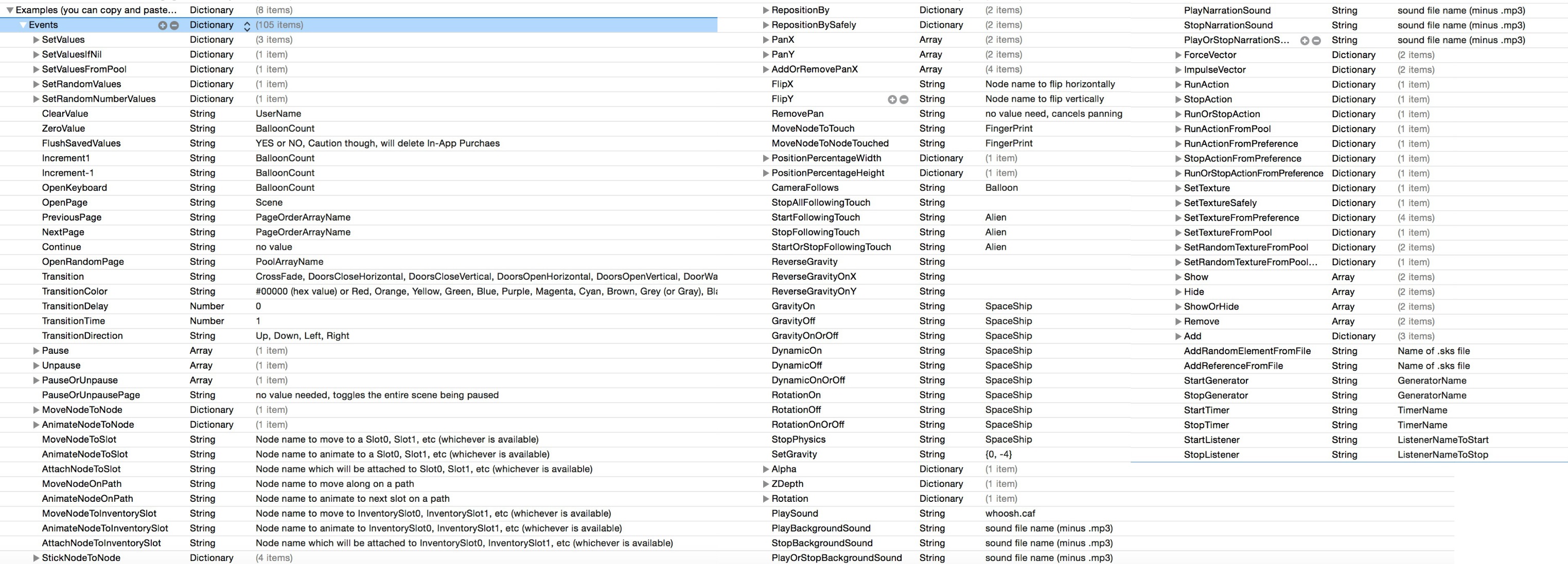The Story Tellers Kit 2 – Built for iOS and tvOS with Swift 5 Key features… Telling stories is just the tip of the iceberg… Don’t let the name fool you, the Story Tellers Kit 2 isn’t just about telling fantastic stories. You can create endless levels right within Xcode, then using simple properties define the dynamics of an unlimited number of different games. Make arcade classics, puzzle games, maze games, etc. We’ve recorded a new video tutorial that shows how to create an Angry Birds style physics game using the kit. You’ll see how to setup the level visually, add point values for collisions and then make it so if the player exceeds a certain score they can advance to the next level. Otherwise, they restart the same level. And coolest of all, the demo video shows how to setup the game for the new Apple TV! Oh the places your readers can go…. Include your readers in the story!… Our latest feature allows readers to pick a photo or take a new one to add themselves into the story! The image can be masked (so only a portion of the image shows), and edited within the mask by changing the position, rotation, zoom, squash and stretch. Once set, the image and mask settings stay saved throughout the life of the app, or until a new image and settings replace the current one. So readers could dress themselves up in the book and go off on an adventure as a knight, princess, goblin, whatever, and then return to the app months or years later, and their image will still be there!  This is a great feature to combine with some of the text features that let readers add their name to the story (or even change the story itself). Click the image to the left to find out how easy this option is to integrate. And like all our cool features, your purchase of the kit includes a page that demonstrates this in action. Design and animate pages directly within Xcode… Xcode allows you to visually compose Actions on a timeline. You can do this in the Scene for your page OR you can create a separate file specifically for Actions to reuse later (either from the Property list or by dragging them into your page scene). From there, you’ll simply drag and drop Actions into the timeline. You can change their duration and other settings from the Attributes editor . You can even select multiple Actions and make them loop infinitely. Actions make it easy to compose a series of sounds, or sequences of animations all without writing code or setting properties in the kit’s Property List. None of the moving elements in the example video on the right were set using properties in the kit’s Property List. They are all physics based or composed using timeline Actions. Save Characters and Collect Items / Inventory Some of the coolest features of the kit have to do with saving a reader’s experience and preferences. This could be a favorite dress for their princess, or a favorite vehicle to navigate the world. The kit also makes it incredibly easy to save values for whatever you want. Via the property list you get to choose the name and value of anything worth saving. For example, it could be as simple as Vehicle is Car. So pages can load up with variations based on these saved values. For example you can set textures, run animations, or do unlimited events based on whether or not Vehicle equals Car. You could even jump to other pages, open secret doors, show buttons meant only for cars. These saved values persist throughout the lifespan of the app too!  So even if the user closes it, their favorite option will be back next time they open the book app. The demo video to the right demonstrates this and also shows some inventory features, how the camera can track nodes, and how you can define paths for the character or any node to move along. Add Physics to make your tale feel real! Is there anything more fun than seeing things unexpectedly fall?  Or slide, or roll, or bounce around? The kit fully supports all the amazing physics properties available as of Xcode 7. And we’ve enhanced them by including easy-to-trigger events to turn on or off things like gravity and physics-based movement whenever you want. And you can create buttons to force physics-based images to move around. For example, you could create multi-directional buttons (Up, Down, Left and Right) to push things around, perhaps in a maze. Plus you can listen for contacts between specific bodies and do an unlimited number of events when they collide. So not only could you simply enhance a story book with these features, you can create entire mini-games. Angry Birds for example, is nothing more than pushing one thing toward a bunch of other things and counting up what happens afterwards. No Coding Needed. Ever. Seriously. So you’ve got a great idea for a children’s book app. You’ve got the illustrations yourself, or maybe you’ve hired someone for that part. But you can’t code and you can’t hire a developer for 20k to do the project for you. That’s where this kit comes in. We don’t expect our buyers to know anything about programming with Swift (or any language). And we don’t expect you to learn either.  That’s our job. We’ve created a world where all you have to do is set simple properties that control or add functionality to the elements you’ve laid out in Xcode. Aside from adding properties to the images you’ve added to your scene, you can create properties that listen for particular things to happen (like intersections, or values equaling specific amounts), timers to do unlimited events at particular intervals, generators that clone elements (for example, a single star could create an entire night sky with random textures), tap and rotation gestures, and so much more! We wrote an entire iBook documenting the things we’ve made my possible! Timers, Generators, Listeners and an Arsenal of Events The Story Tellers iOS Starter Kit 2 can be used to create thousands of story book apps,