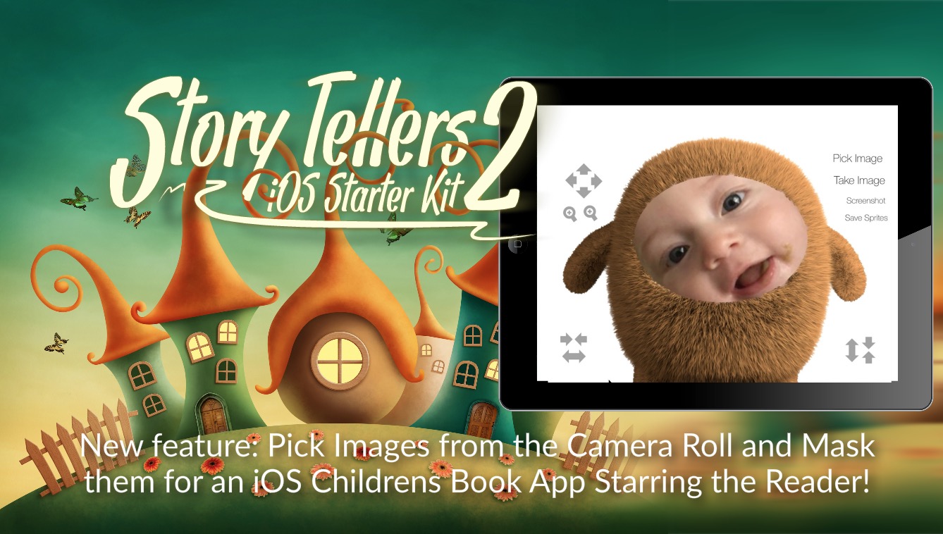 This video discusses some amazing new features in the Story Tellers iOS Starter Kit 2 that allow your readers to pick a photo or take a new one to incorporate into their story. The image can be masked, and edited within the mask (by position, rotation, zoom, squash and stretch) and those settings will be saved for every page of the book that displays the image. So readers could dress themselves up in the book and go off on an adventure as a knight, princess, goblin, whatever.