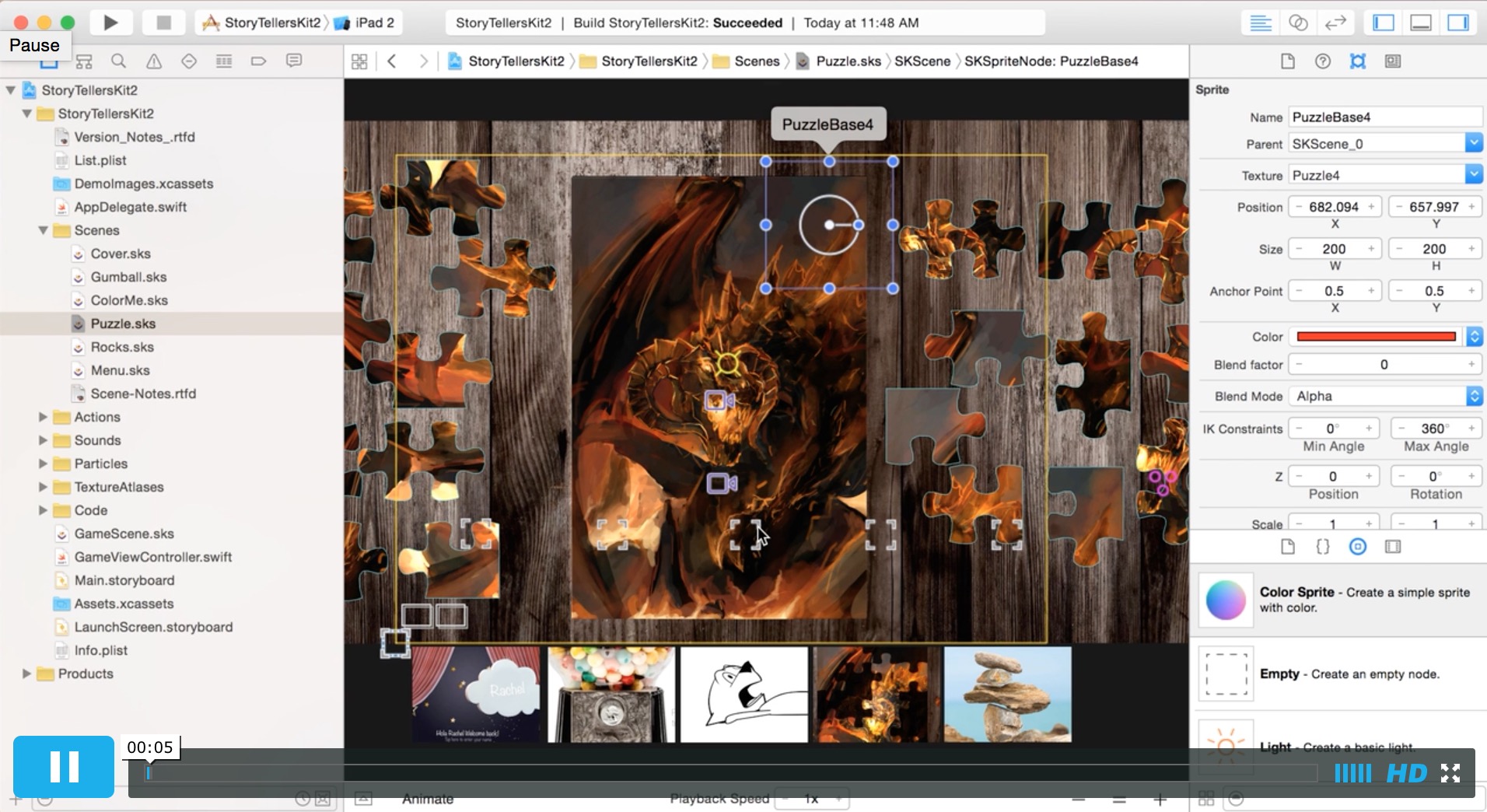 This video shows all the properties in the Story Tellers iOS Starter Kit 2 that make a traditional puzzle come to life. You can drag pieces around, collide them with other pieces, even attach particle emitters to pieces to add some extra flare! If you haven’t seen the demo yet, you can do so here.