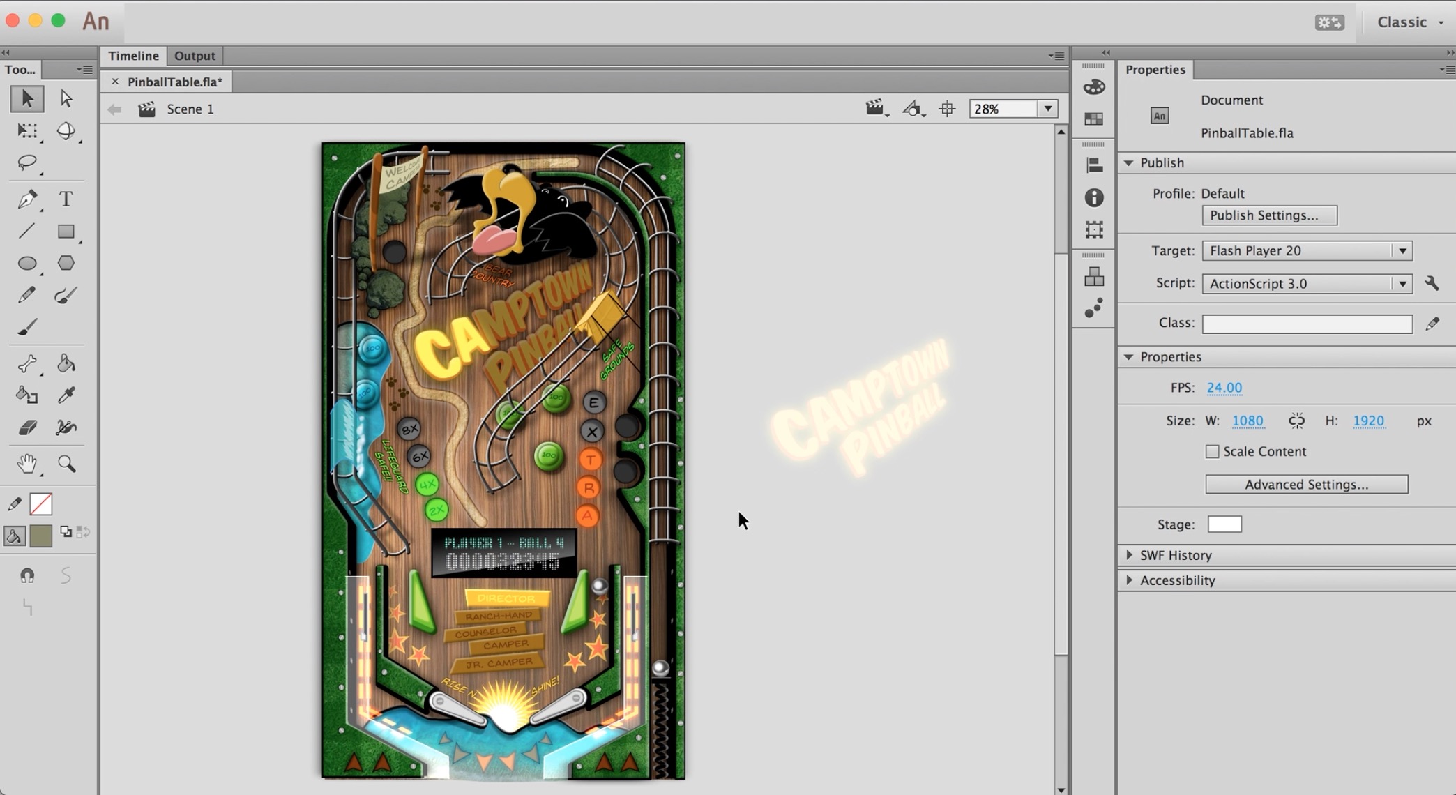 In this new video tutorial series, we’re going teach you how to draw pinball game art or ANY kind of top down viewed game art. So fear not, if you have no interest in creating a pinball game, you’ll still enjoy this series as we cover dozens of illustration techniques for Adobe Animate or Adobe Flash. Our pinball table will have a mostly-top down viewed perspective, with some 2.5D leaning angles toward the top. So by the end of the course you should feel comfortable drawing objects directly overhead or with a slight angle.